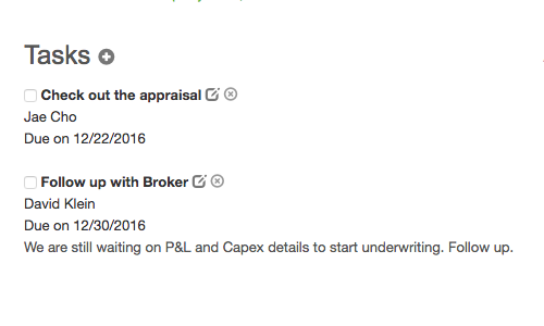 When you are working on a real estate investment deal, you have to closely manage your tasks. Missing a task can mean the difference between closed or delayed deal. It can also mean a difference between a successful and unsucessful investment. Reiance helps you track the things you have to do for properties and contacts so that you can stay organized.